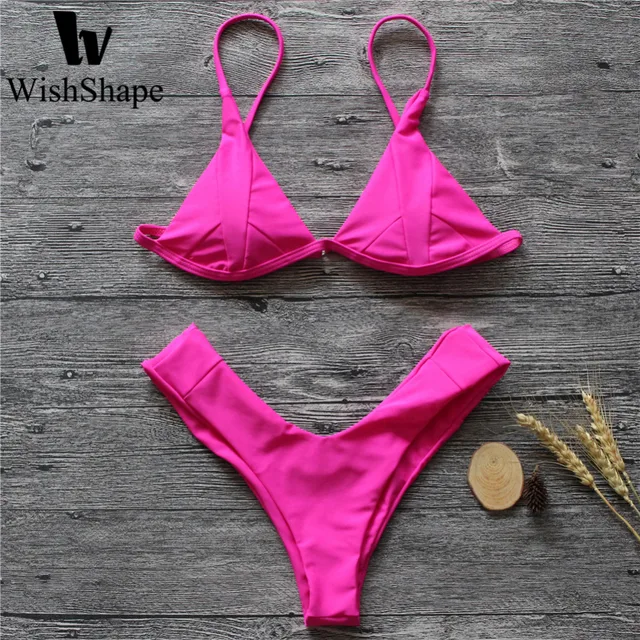 Cheap Sexy Brazilian Thong Bikinis Push Up Swimwear 2018 Women Pink High Cut Bikini Set Low Waist Beach Swimming Bathing Suit Biquinis