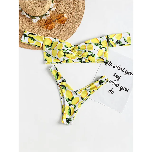 Special Price - AZULINA Lemon Printed Thong Bikini Sexy Swimwear Off Shoulder Bikini Set Bathing Suit Brazilian Bikini Swimming Suit for Women Wonderfull