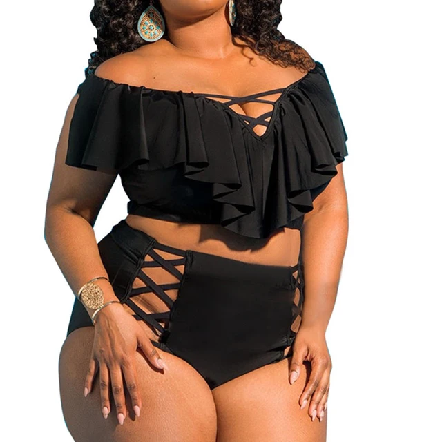 Online - Plus Size Bikini set Swimwear High Waist flouncing Women Push Up Beach Brazilian Swimsuit Vintage Retro Bathing Suits Swim Best Offers