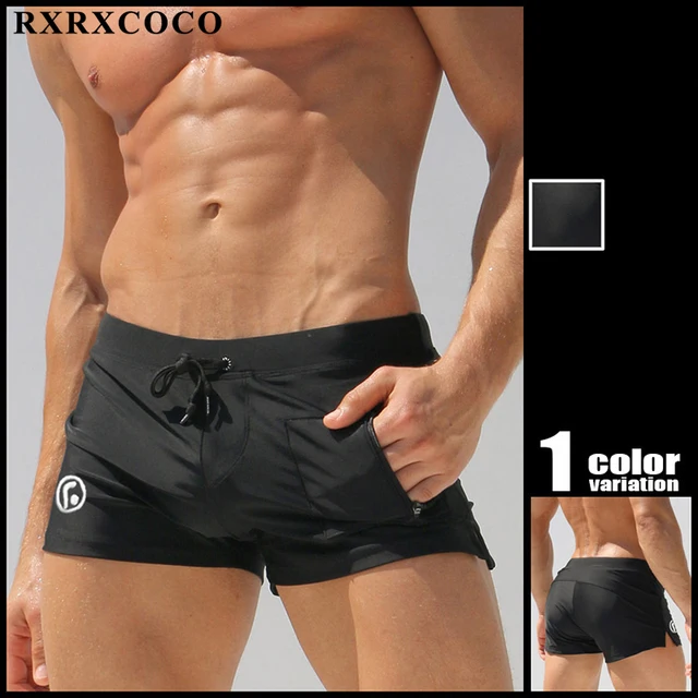 Who Sells The Cheapest Online - RXRXCOCO Brand Swimwear Men Solid Men's Swimsuits Sexy Swim Trunks Surf Board Beach Wear Man Boxer Shorts Hot Mens Swim Briefs Best Price