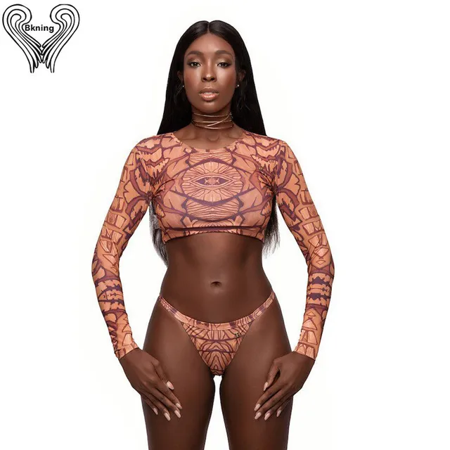 Bkning Long Sleeve Swimsuit Vintage Bathing Suit Push Up Swimwear African Swimming Suit For Women Bikiny Ladies Pin Up Swim Wear BKNING Official Store US $11.89 / Set Free Shipping