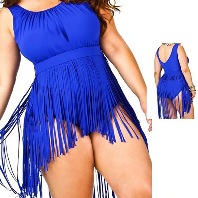 Compare - 2018 Summer Women One Piece Swimming Suit Solid Tassel Push Up Straps Swimwear Plus Size XXXL High Waist Swimsuit Beach Wear Best Offers